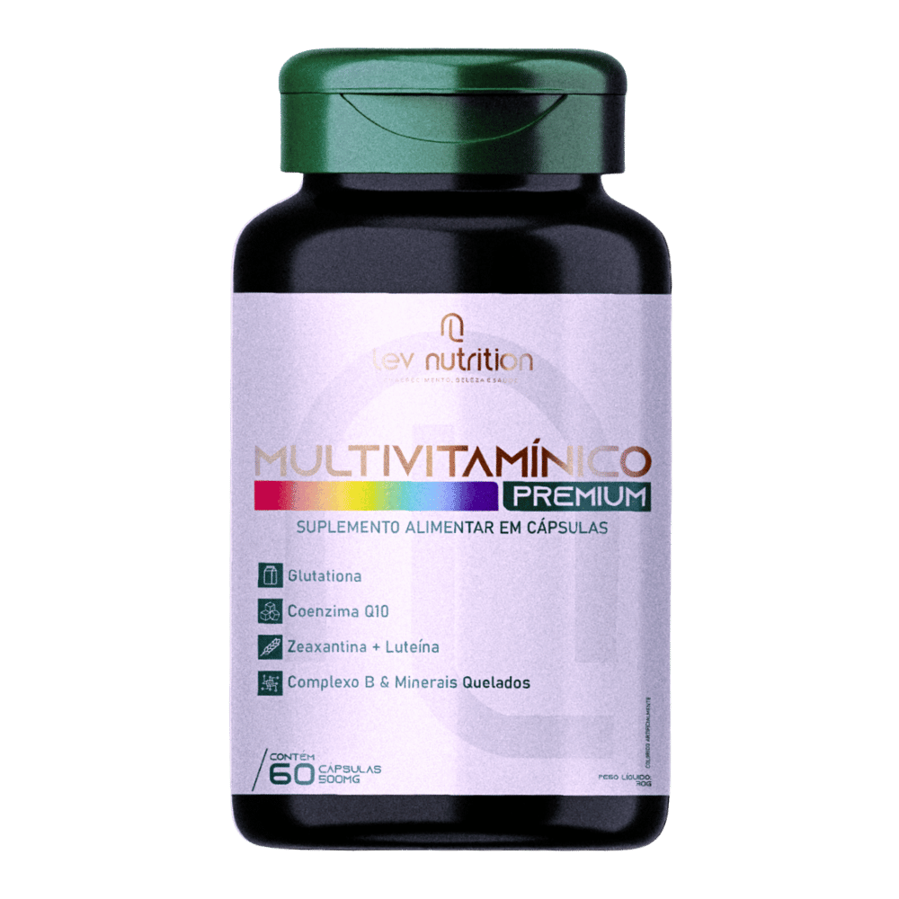 O Multivitamínico Premium Lev Nutrition reúne vitaminas, minerais e antioxidantes que atuam juntos para apoiar sua saúde.
